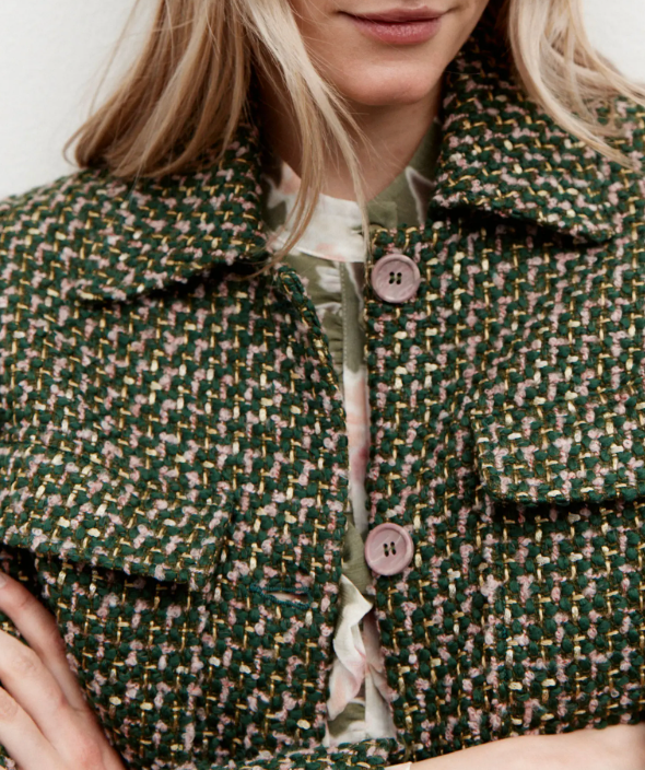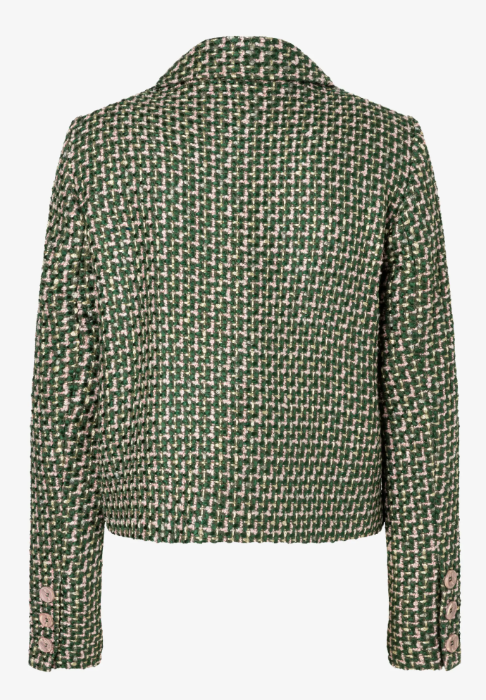 This boxy short blazer from MORE & MORE in a green bouclé texture is stylish, modern, and versatile. Style it ladylike with a pencil skirt and heels, or casually with faded jeans and sneakers for a truly on-trend look.