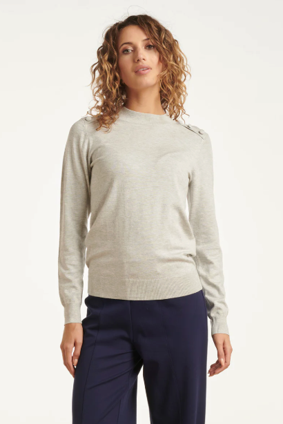 Add a touch of glamour to your outfit with this grey-colored lurex top from Smashed Lemon. The fitted cut and sparkling accents make it perfect for festive occasions. This top has buttons for that extra touch and is made of 85% viscose. Key points: - Gold lurex button details for added flair - Short, fitted style with long sleeves - Made of 70% viscose.