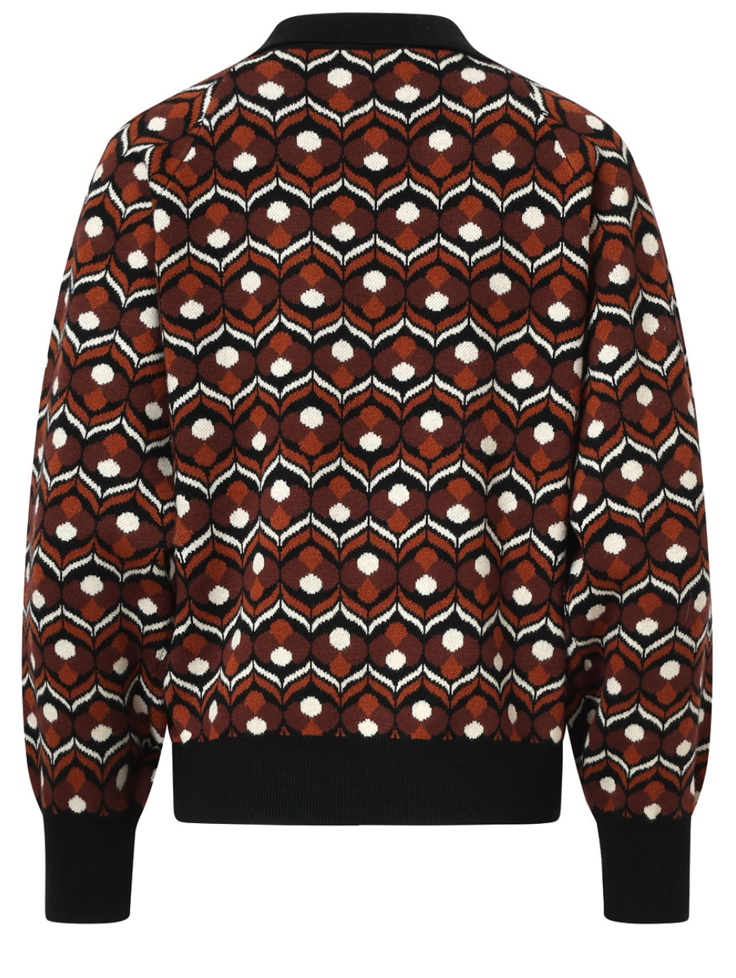 This beautifully knitted sweatshirt features a flattering v-neck and a cozy winter-inspired tonal pattern, perfect for staying stylish and warm.