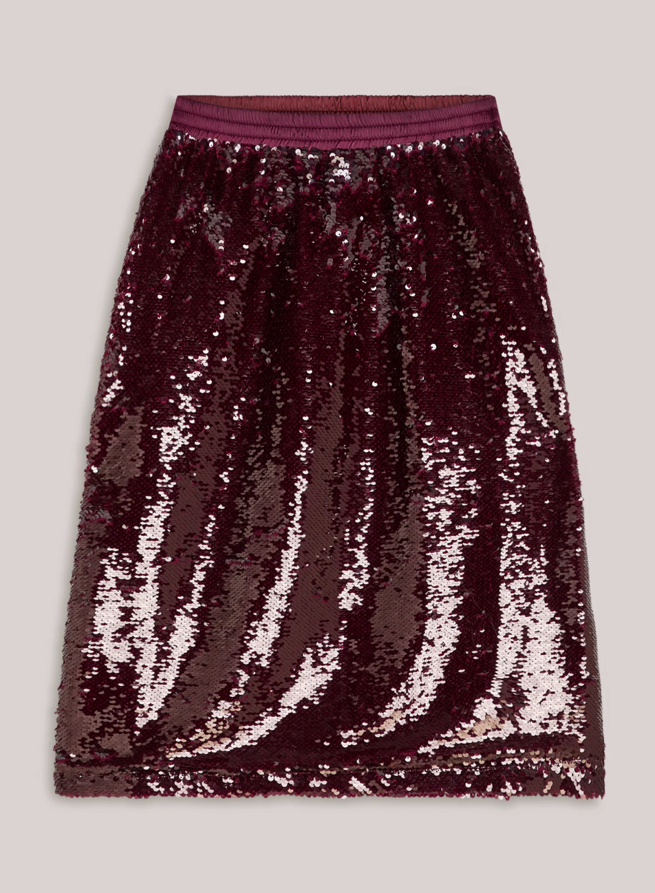 Sequin skirt with elastic waistband in colour merlot.