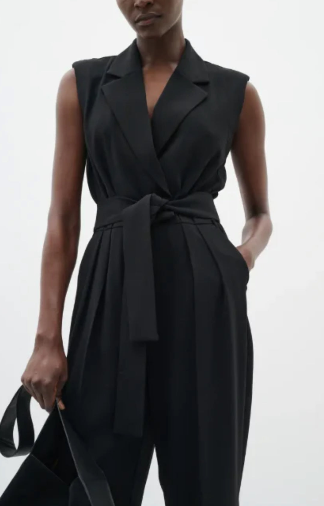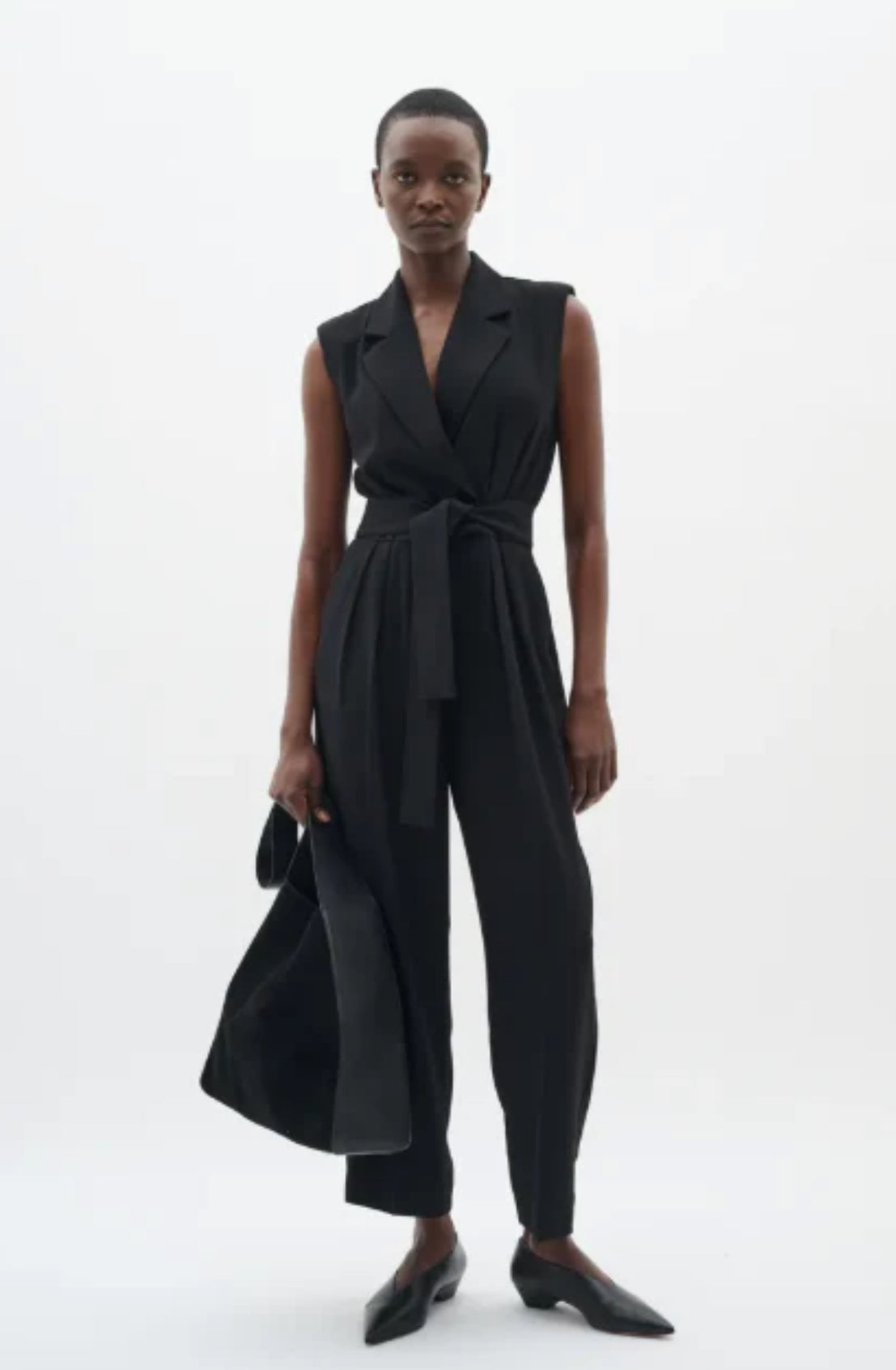 The InWear BriezIW Jumpsuit in black offers a tailored fit with a lapel collar and self-tie waist belt for a stylish, yet comfortable look. With its tapered legs and ankle length, this jumpsuit is perfect for both workwear and occasion dressing. Made from a blend of polyester and recycled polyester, it combines sustainability with a modern silhouette.