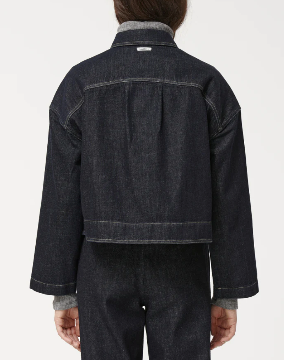 The Summum Kanao Jacket is a stylish short denim piece designed for a relaxed, loose fit. Featuring a classic shirt collar, full-length sleeves, and a dropped armhole, it offers both comfort and modern appeal. Crafted from 100% cotton, it ensures breathability and durability, making it a versatile addition to any wardrobe. Buttoned down the front, this jacket blends casual ease with timeless design effortlessly.