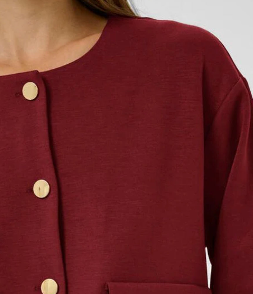 "The InWear Gida VincentIW Jacket is a sophisticated addition to any wardrobe. Made from soft modal, this casual boxy jacket boasts gold-toned buttons and a round neckline for a stylish touch. Its versatile design makes it the perfect choice for any occasion."