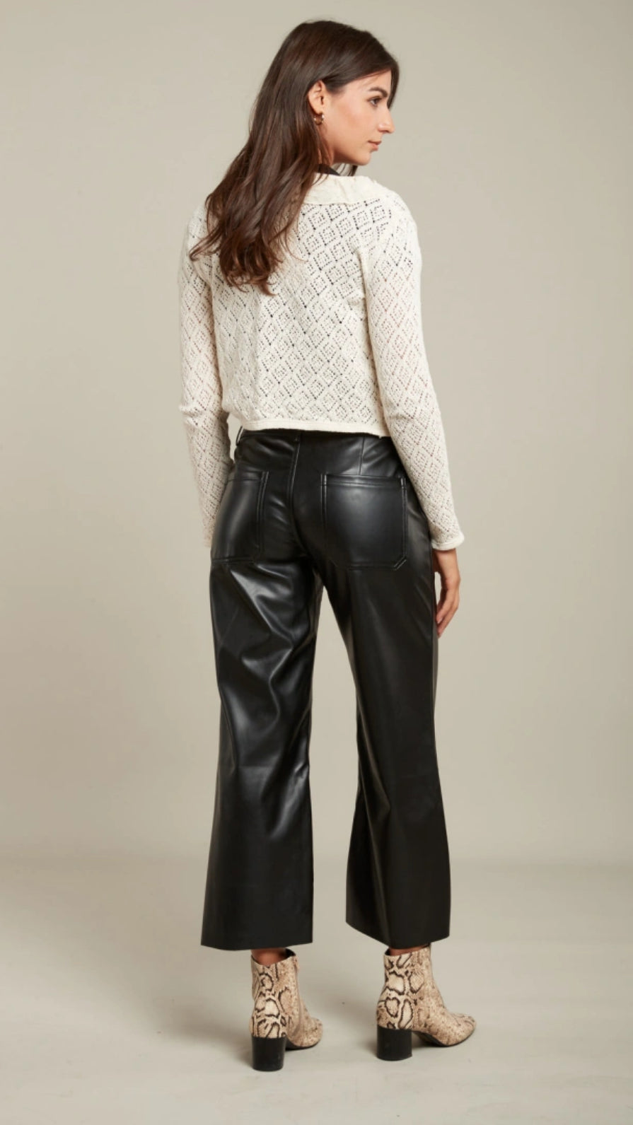 Tara Faux Leather Cropped Length Trouser