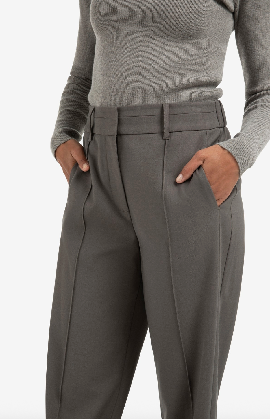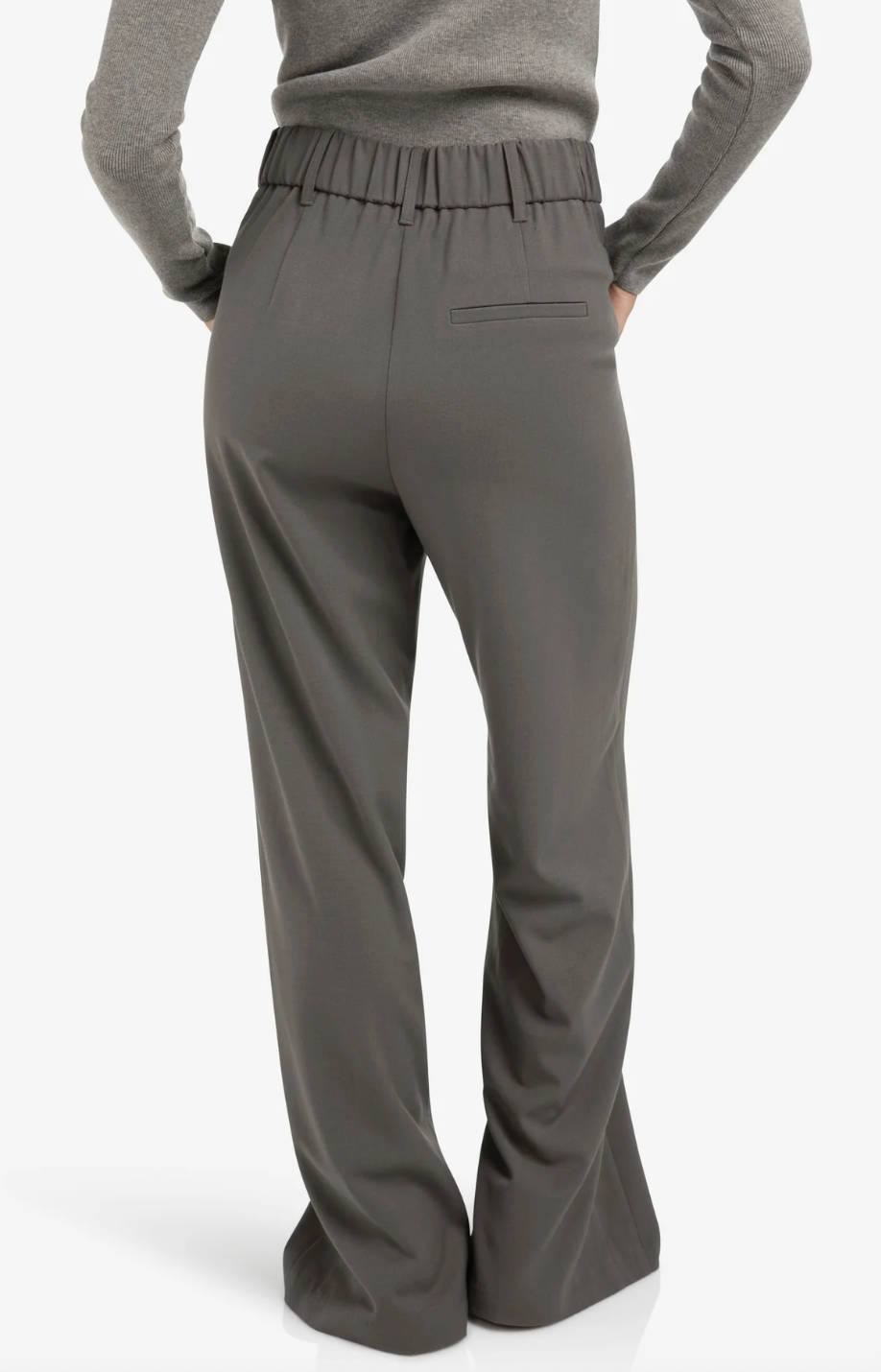 These soft woven trousers feature a flattering high waist, wide legs, and a comfortable elastic waistband at the back. The decorative seams along the front create a tailored look, while the subtle slit at the hem adds a modern touch. A versatile piece to wear both casually and dressed up. The model is 173 cm and wears size 36.