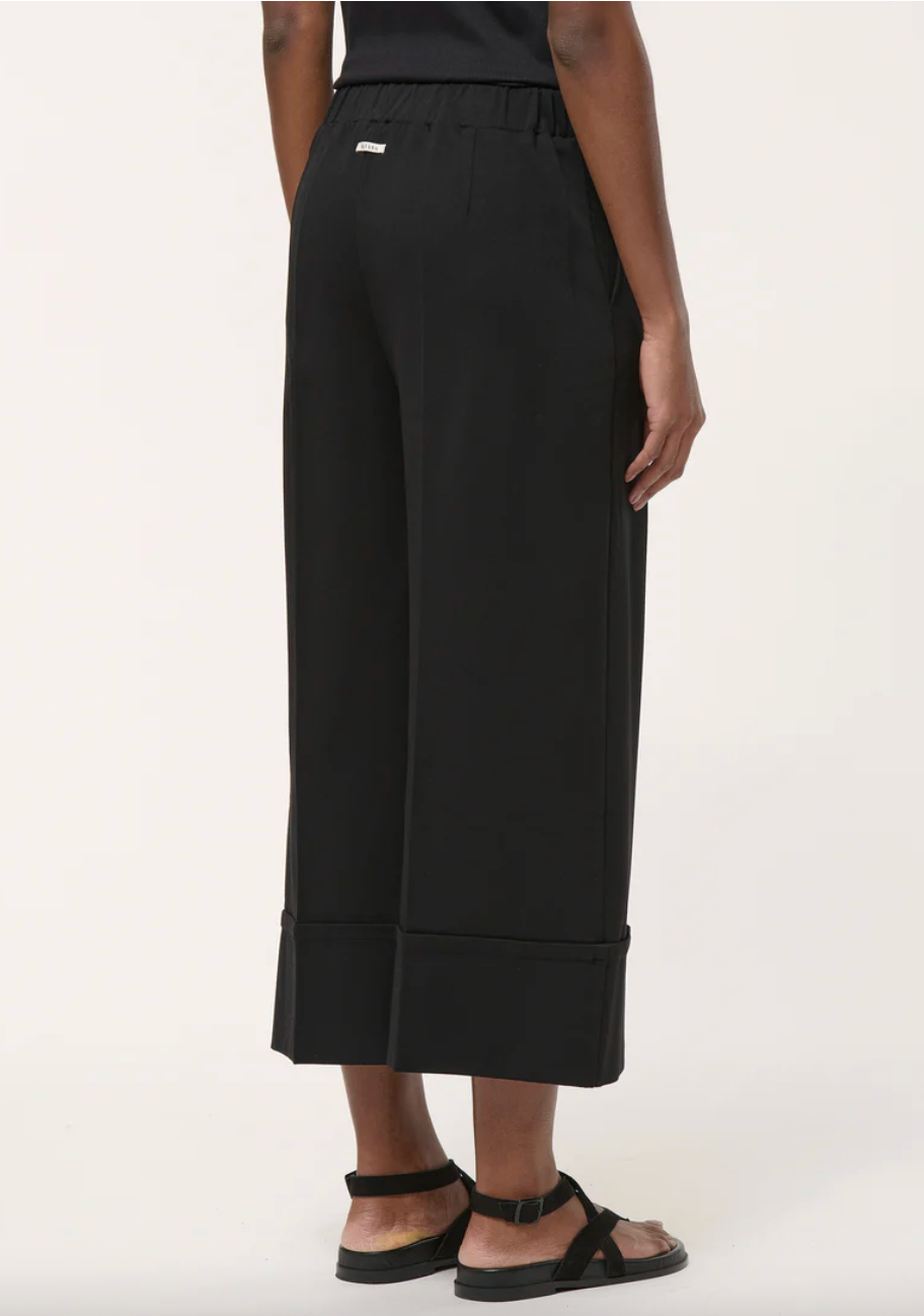 Wide-leg pants with large cuffs in stretch milano jersey