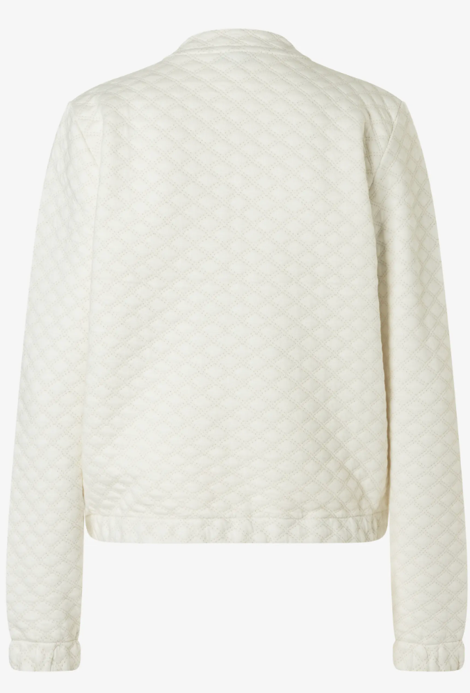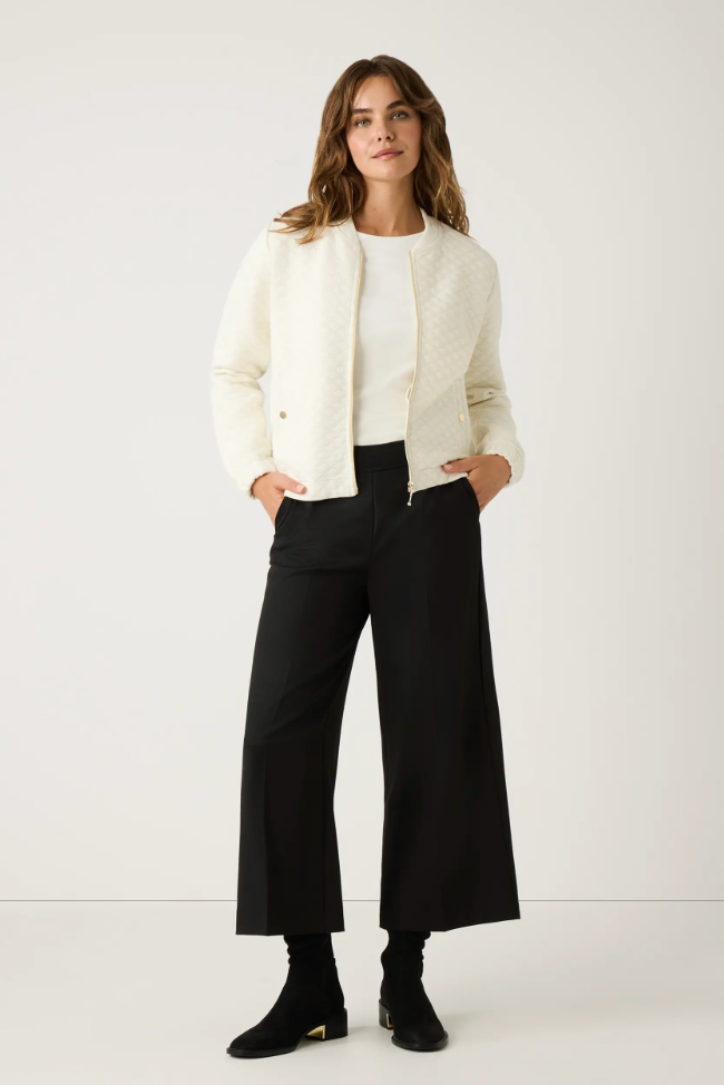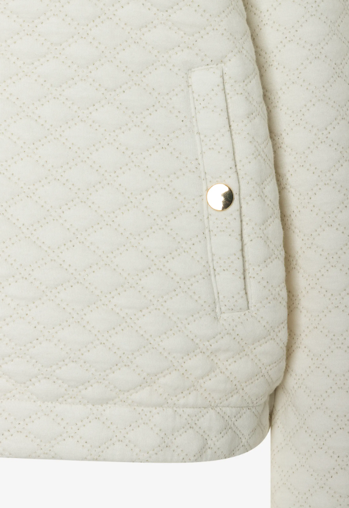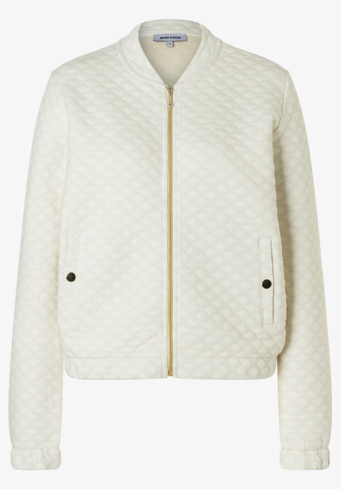 This short jersey blouson from MORE & MORE is incredibly comfortable and super stylish, with stylish details like the gold-colored zipper and small diamond quilting. It's easy to combine with everything from classic business trousers to faded jeans to a flowing chiffon skirt.