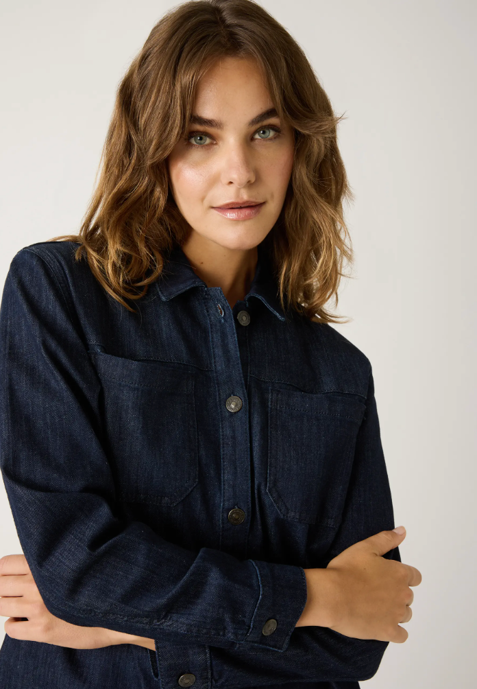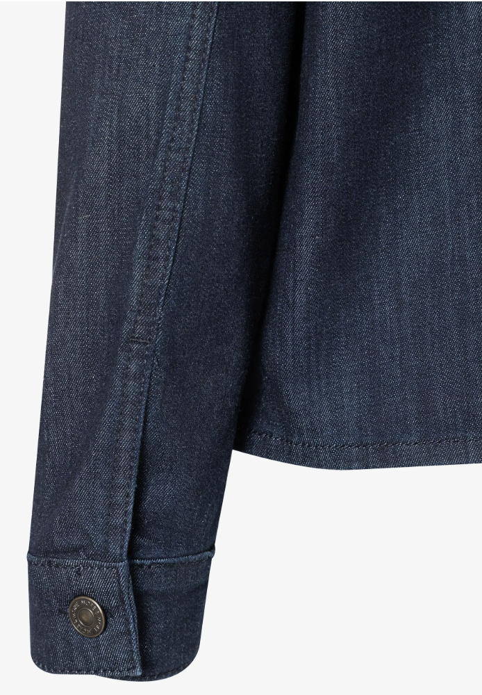 The new denim shirt from MORE & MORE can be styled in a variety of ways. Whether as a casual jacket with a top underneath, as a shirt with Marlen trousers, or even open with a feminine chiffon dress. It looks especially cool in an all-over denim look with matching trousers.
