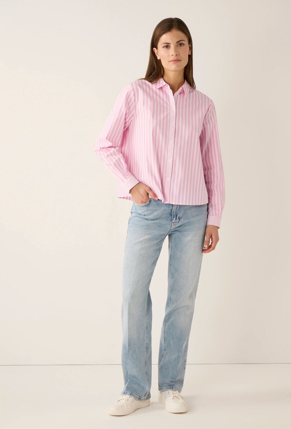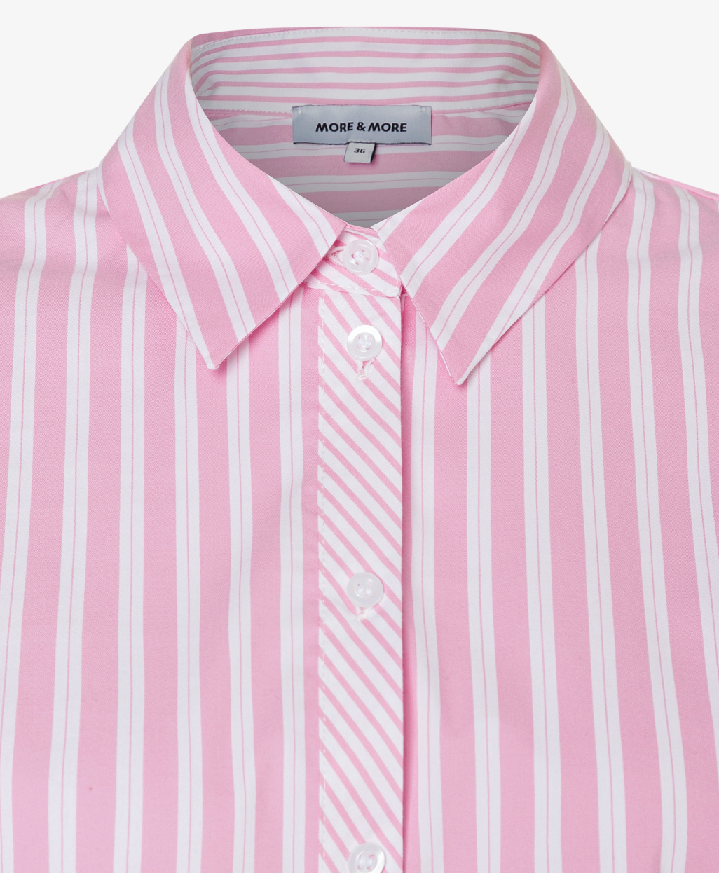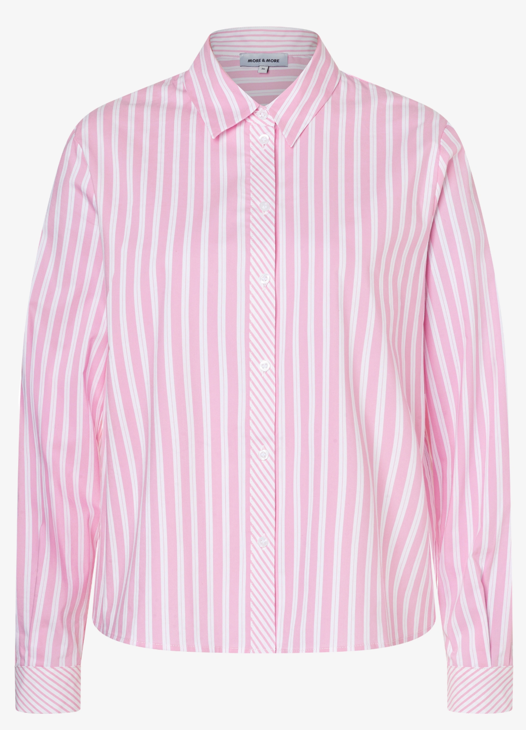 This boxy striped blouse from MORE & MORE combines effortless style with timeless chic. The long sleeves, classic shirt collar, and full button placket create a clean, structured look, while the boxy fit gives it a modern update. Perfect for uncomplicated outfits – from smart to casual.