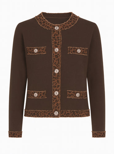 Connie Leopard Trim Cardi Chocolate