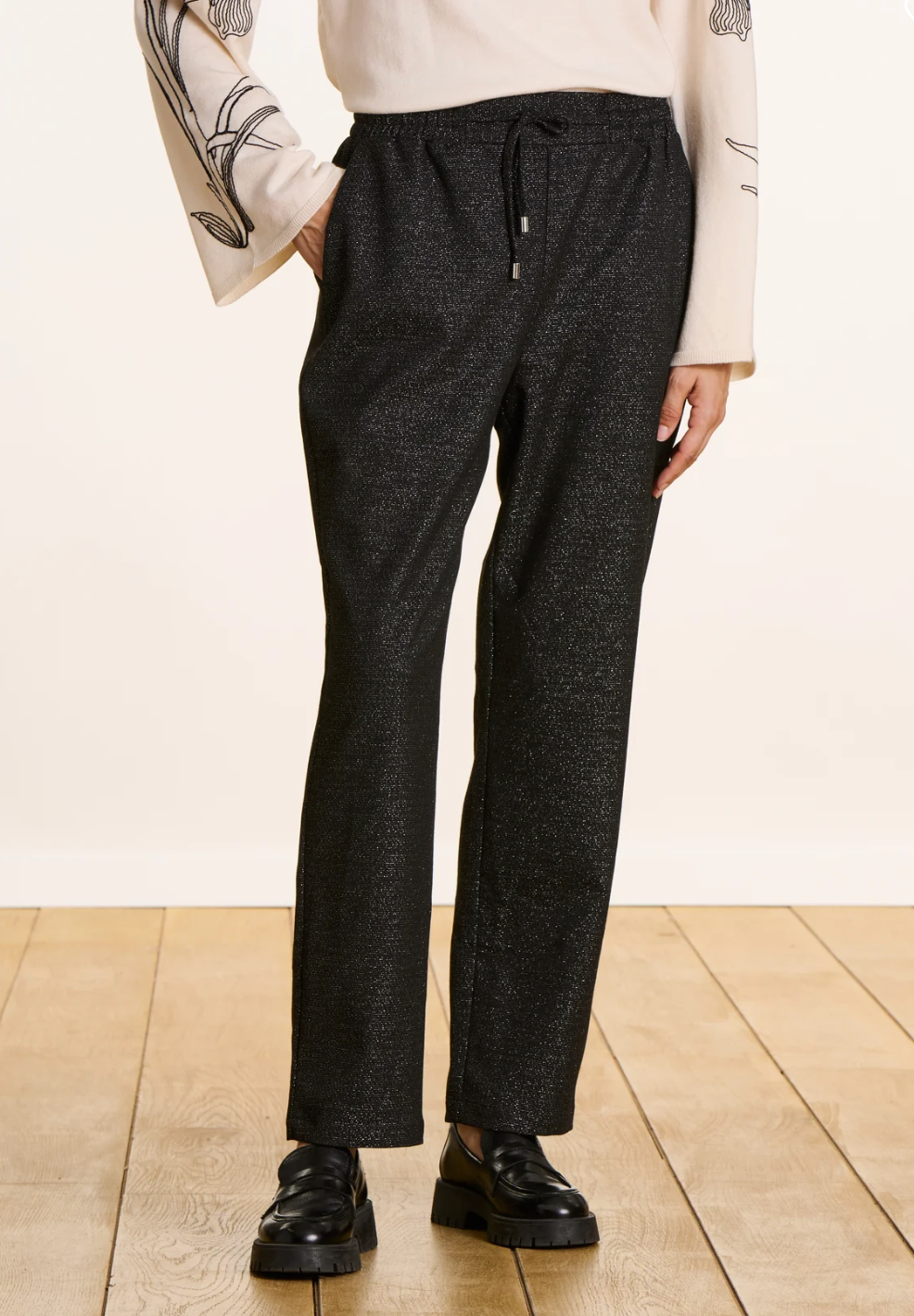 Experience comfort and style with the Faye Stretch Flecked Trousers. Featuring a flattering carrot fit in a subtly shimmering fabric, these trousers have an elasticated waist with a drawstring for a perfect custom fit. Fully lined for added comfort, they’re ideal for effortless, polished looks.