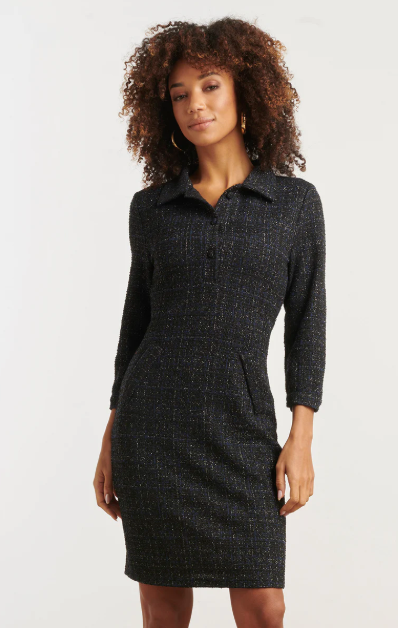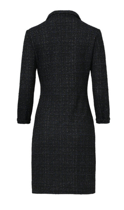 This navy fitted dress from Smashed Lemon is an elegant and timeless addition to your wardrobe. The classic check print is incorporated into a richly woven diamond texture, giving the dress a stylish and luxurious look. The tailored fit accentuates the feminine silhouette, while the above-the-knee length adds a modern, playful twist. Perfect for the office, formal occasions, or a smart daytime look. Key points: * Classic navy check print with a visible diamond texture * Elegant tailored fit that flatters the feminine figure * Short, above-the-knee women's dress that is ideal for business and formal outfits