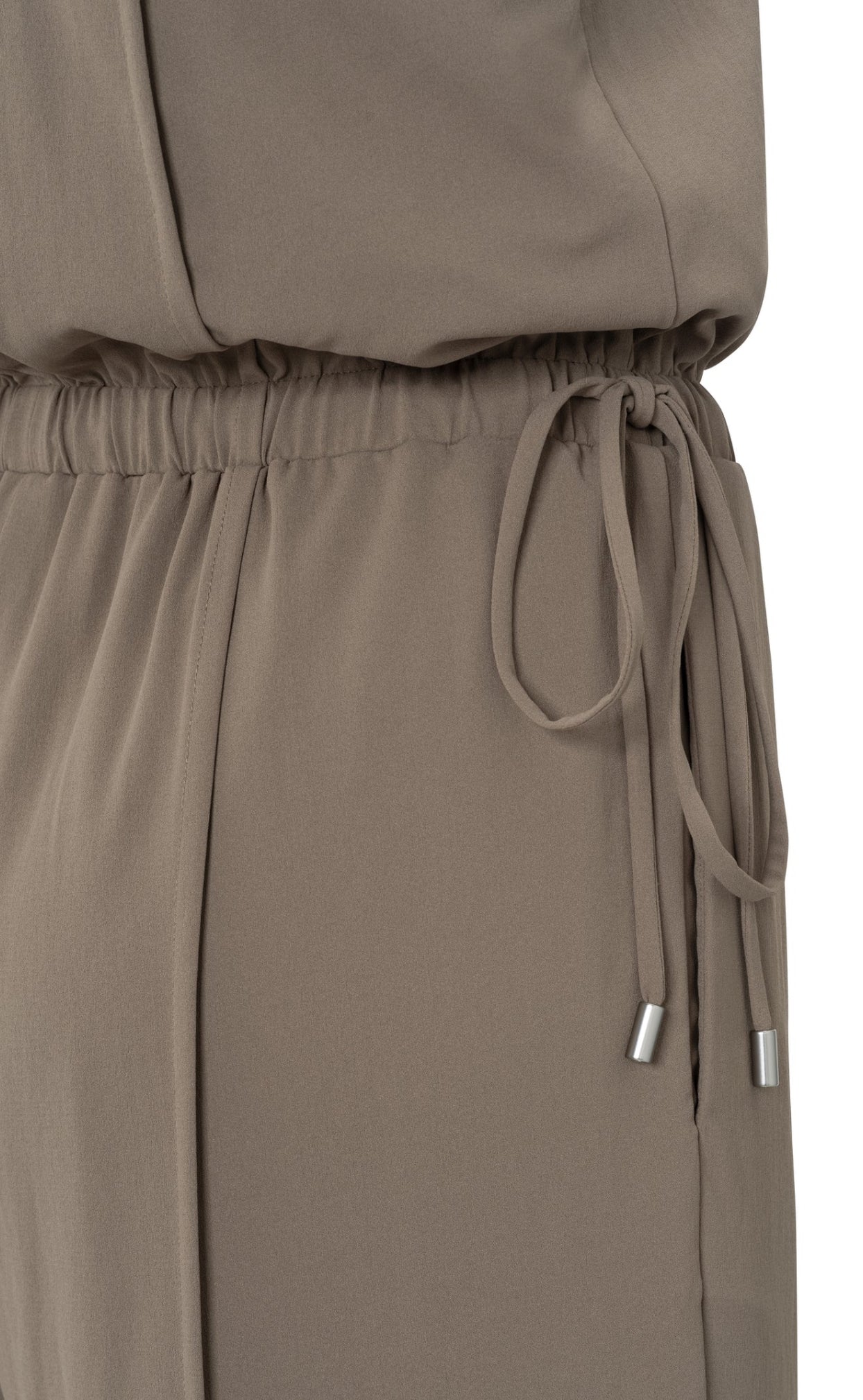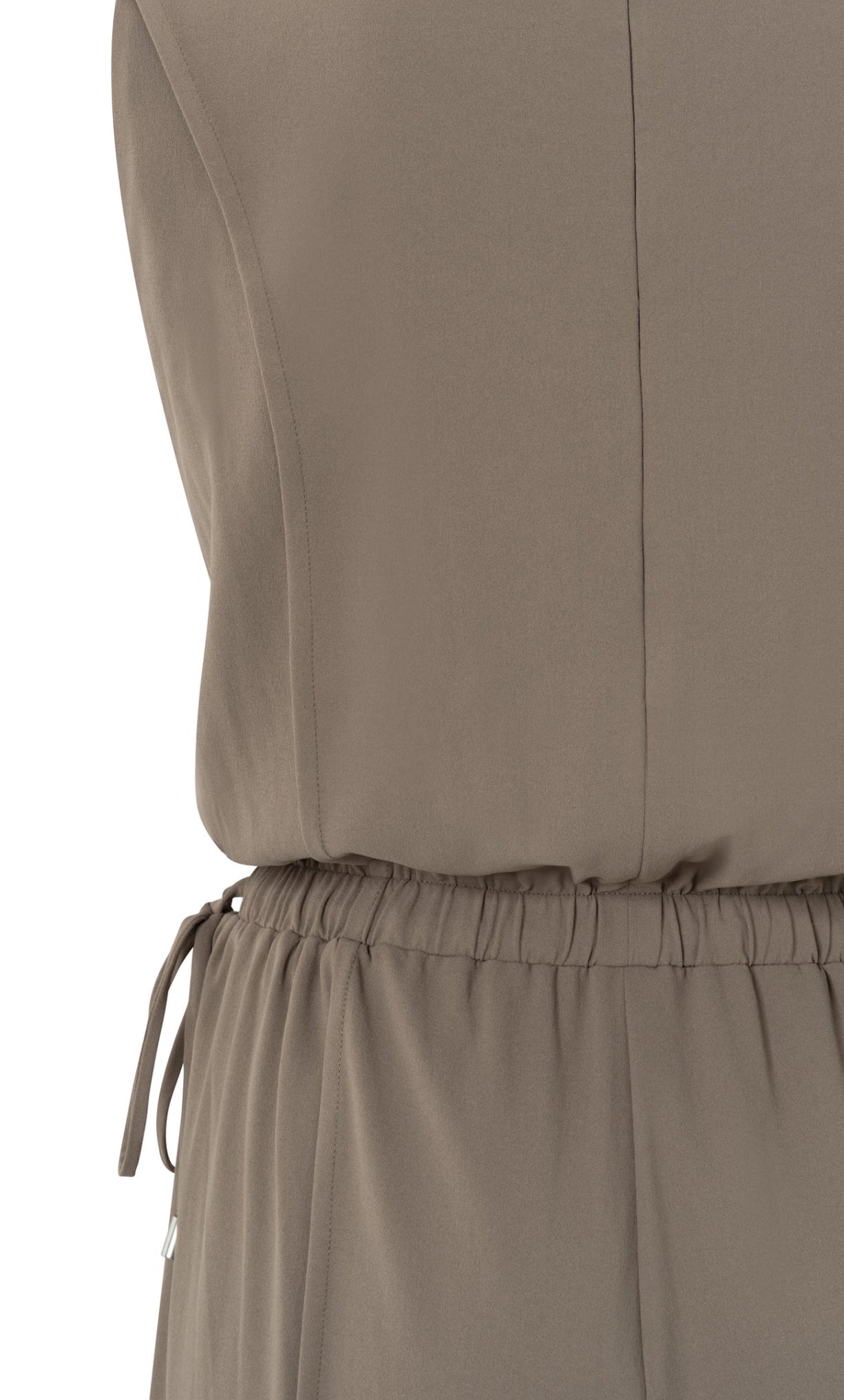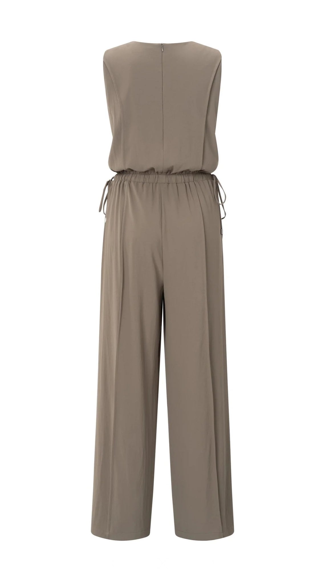 This elegant jumpsuit is crafted from a flowy woven fabric and features a sleeveless design with a round neckline. The elasticated waist is accented with refined side drawstrings for a flattering silhouette. the straight, wide legs offer an airy look. Finished with a concealed zip at the back. The model is 178 cm and wears size 36.