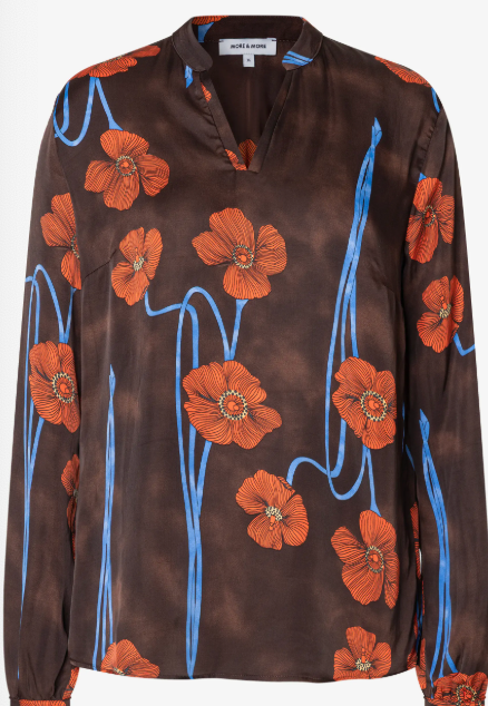 Elevate your autumn style with this flowing More and More blouse in rich dark brown, adorned with a striking floral print. Its relaxed fit and boho flair pair effortlessly with washed-out jeans or chunky corduroy trousers, creating an effortlessly cool and cozy look. Perfect for layering on crisp days, this blouse adds warmth and style to your wardrobe with ease.