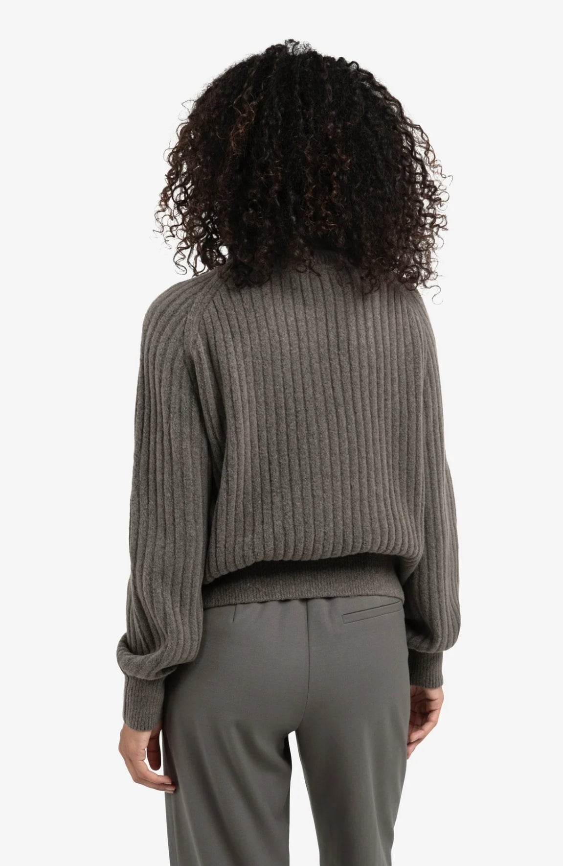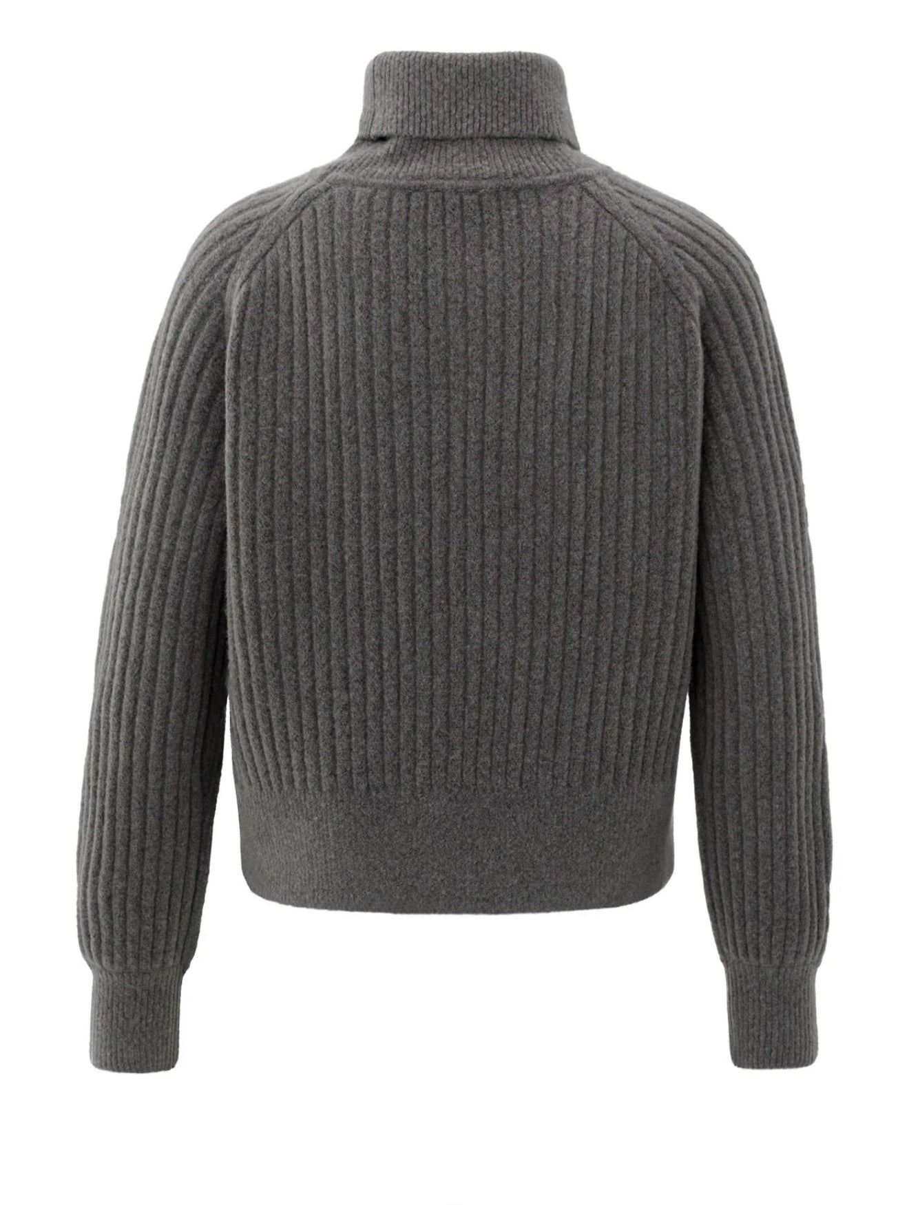 This stylish turtleneck sweater is crafted from a soft wool blend with a rich ribbed texture. It features a subtle cable detail at the front and long raglan sleeves for an elegant touch. The straight fit offers both comfort and sophistication. A warm and timeless piece that pairs with both casual and refined outfits. The model is 173 cm and wears size S.