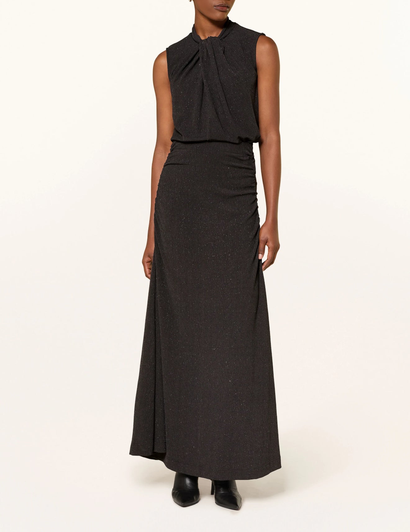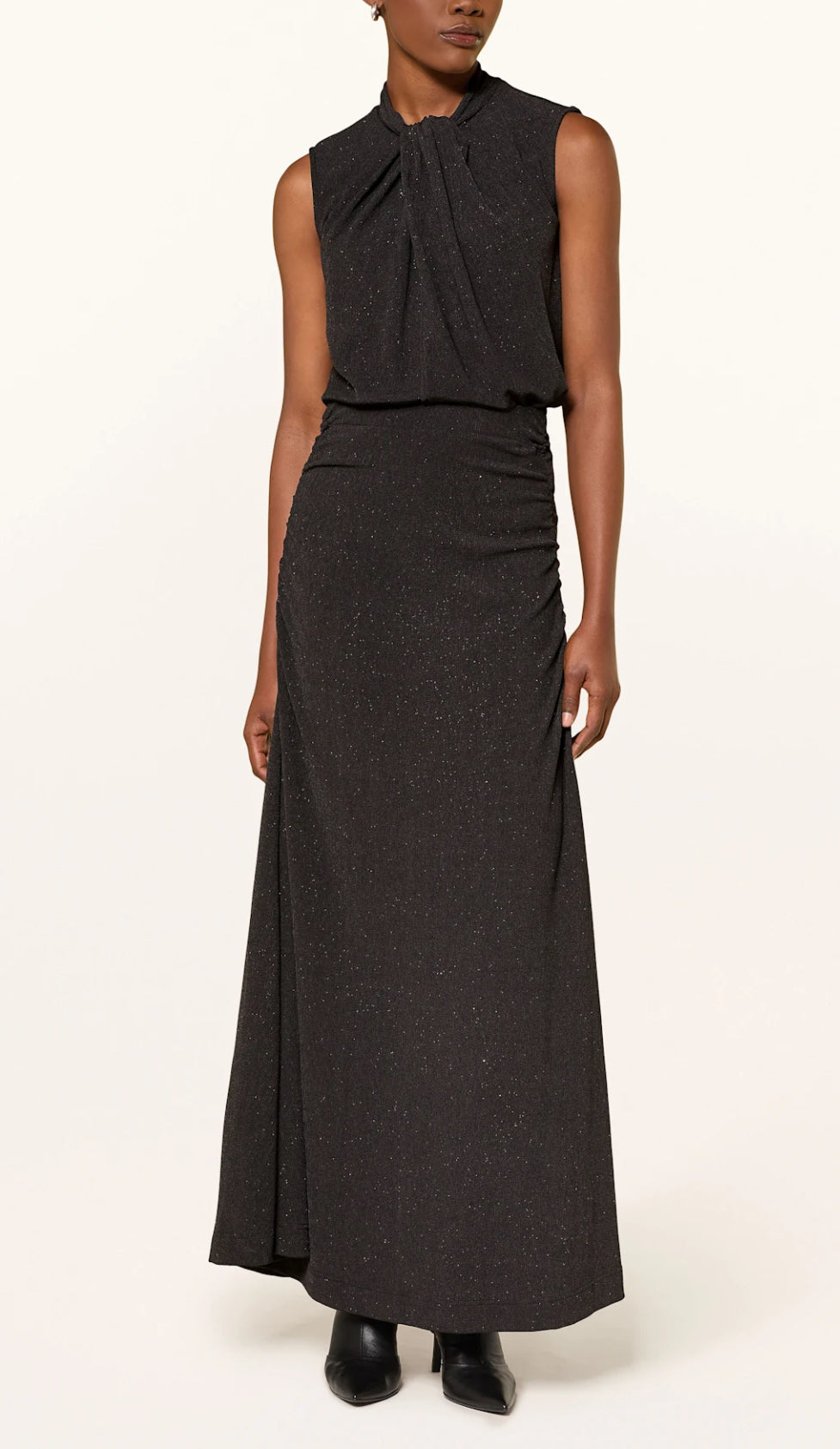 Maxi velvet dress features a flowing A-line silhouette, deep V-neckline, and cap sleeves for refined comfort. Ideal for smart-casual to formal settings, this elegant long dress offers timeless style with a relaxed fit.