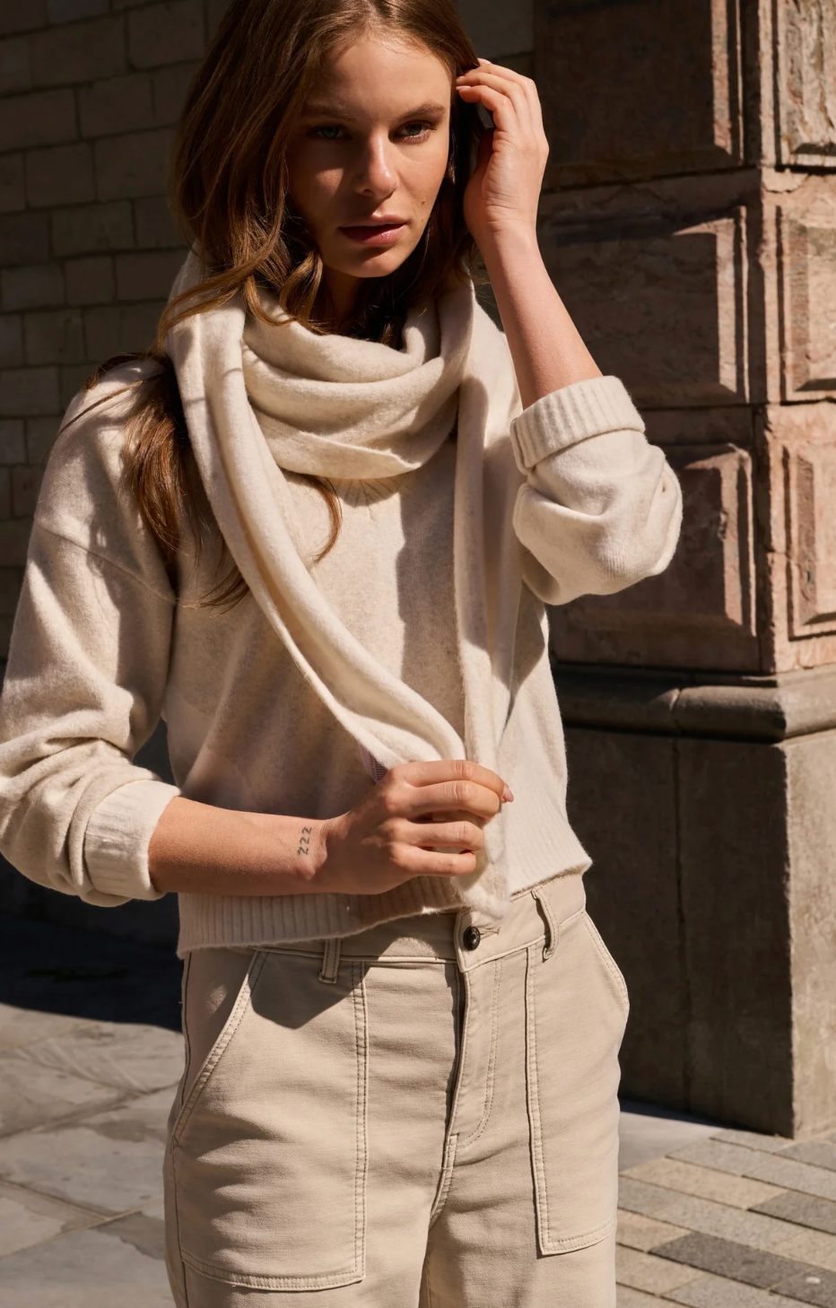 This soft knit sweater features a regular fit, long sleeves and a deep V-neckline. Designed with a subtle tonal colorblock pattern and finished with ribbed cuffs and hem for added structure. A modern and comfortable piece that pairs easily with both casual and refined looks. The model is 178 cm and wears size S.