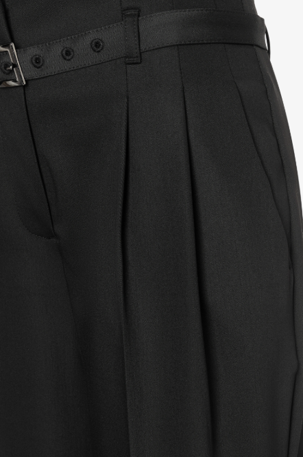 Elevate your wardrobe with these sophisticated wide-leg pleated trousers from MORE & MORE. Designed for versatility, they transition seamlessly from office to evening wear, offering a flattering silhouette that works with everything from fitted tops to relaxed, oversized styles. The classic black hue ensures effortless coordination with your existing pieces, while the pleated detail adds refined structure and movement. Perfect for anyone seeking timeless elegance with modern appeal, these trousers deliver both comfort and polish for countless occasions.