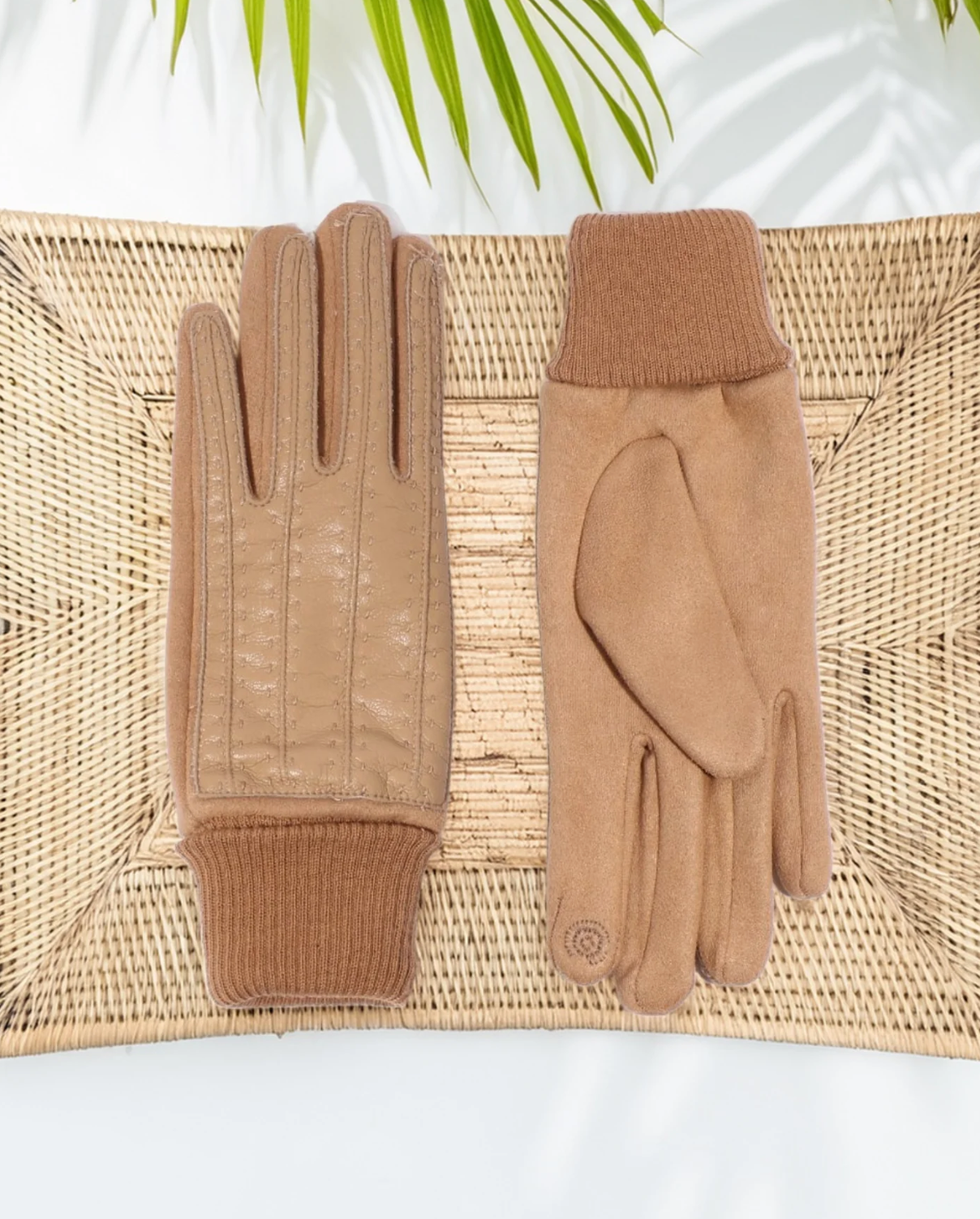 Stay warm and stylish this winter with our Camel Charleigh Glove. Made with faux leather tops and a faux suede glove, these gloves are both trendy and practical. The roll cuffs not only add a unique design element, but also provide extra insulation to keep your hands cozy. With its versatile styling and one size fit, these gloves are perfect for anyone looking to elevate their winter wardrobe.